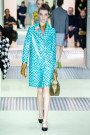 Prada opened with neat Sixties shapes she’s worked before, but now in technic foam, mixing girly and acid colors to quirky effect (“Soft Pop” was a title for the collection). Trim jackets had schoolboy spunk over cropped bell-bottoms, and shared the runway with lady coats and beautiful high-waisted dresses in cuts derived from midcentury couture. Again, the designer veered from the obvious, perverting the look into baby-doll tunic-over-pants ensembles.