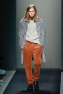 The color palette was a banquet of soothing neutrals. For all the designer’s insistence on cut, it was softness that dominated. A hooded mink coat and a Mongolian lamb backpack were its most extreme manifestations. Otherwise, jacquard-ed blousons and parkas had the comfy look and feel of blankets. The body-conscious cashmere knitwear in long cabled cardigans and even longer rib-knit tops, layered over leggings was lean and athletic. It took on an impressive masculine heft with oversized outerwear.