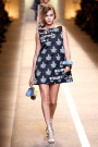 With Cara Delevingne leading the way Fendi looked young and fresh. The orchid played the biggest part in the collection as it popped up as a print on the first ten or so designs. Only to appear as a application on leather designs as well as a decoration in the models’ hair and even on the bags. Oh those bags, they probably deserve a show of their own, especially the little ones attached to some larger models for the occasion.
