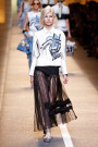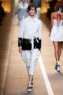 But back to the clothes.. Karl and Silvia created a-line dresses, fringed sweaters, sheer skirts, cropped boxy tops and asymmetrical structured playsuits. Colors of choice were fresh, ranging from black and white to navy and cacao. There was some use of plastic layers as denim made it’s first ever appearance on a Fendi show. Some fun, furry numbers even concluded the show and, unlike at other shows, seemed a perfect fit for a midsummer Fendi feast.