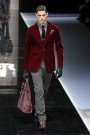 Every single one of the models’ hair was perfectly put in place, but apart from that Giorgio Armani’s models were less concerned about their looks. The f/w man is, according to Armani himself, “a more spirited and less decadent man, who is more involved in what happens around him”. A guy that combines pinstriped pants with an army green jacket if he feels like it. Who is men enough to wear ruby colored velvet and can pull off (too) short double breasted jackets. He can put on a houndstooth shirt with a quilted, checked jacket without looking like a clown. And when he goes out in his three piece suit women just throw themselves at his feet. He dresses sporty, trendy and functional; let’s schedule to meet this guy ‘cause he sure seems like a fine lad.
