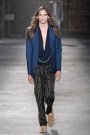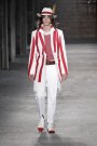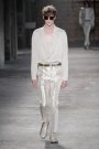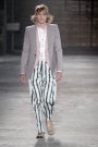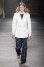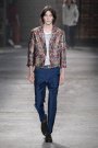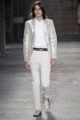 The Pringle ss2012 collection was the debut of designer Alistair Carr. He took the British label took into sportier territory. He fragmented the argyle weave for sweater vests, mixed paper-thin leather and knitwear for jackets and shorts, and made “twinsets” out of coats with linings that matched models’ T-shirts. Al very fashionable and young. Pringle also presented a collaboration with Puma: part Chelsea boot, part sneaker.
