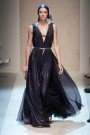 Halfway the show some pastels, olive green and dark slate grey gave a bit more color to the designs. Remarkable were the tummy revealing puffy tops shown through the whole collection, yet Giornetti made them in such a way they didn’t look cheap.