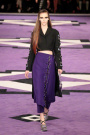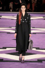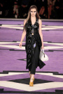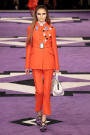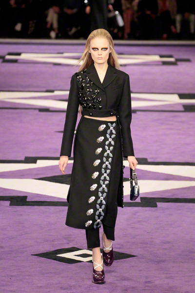 Strength and the power of beauty, those seemed to be the idea s behind the Prada fall 2012 collection. The clothes were elegant, though a bit heavy sometimes, and contained all the classic elements Prada’s known for: the black, the appliqued stones, the suit, the awkward colors and vintage prints. New was the layered silhouette, that sometimes reminded of the way modern Muslim-women dress. The tailoring emphasized the high waist and long line as well as pants. Black dominated, followed by mustard, blue, orange and brown/pink. There were belted jackets, coats, tunics and dresses topping pants which were cut above the ankles.