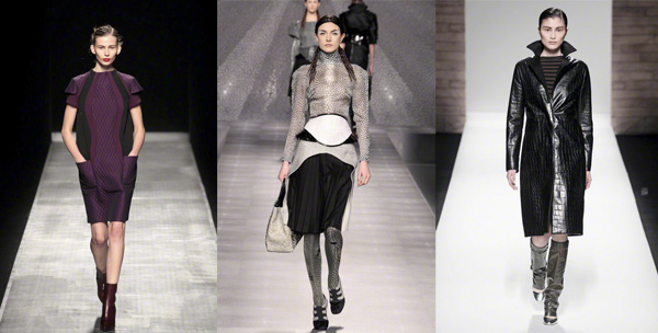 Sportmax explored details in martial arts dress forms and applied these to a TECHNO FORWARD collection, combining natural and tech materials with retro futurist flavor. As did Fendi and Max Mara.