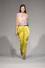 Luckily there are still some Dutch designers showing their collection in Milan. After a few seasons in London twinsisters Spijkers & Spijkers decided to take their collection to Milan, also because they found a good agency. Jazz and cocktails brought the public (most Dutch press and even the Dutch ambassador) in a good mood. The collection focused at loose-fitting dresses in their signature graphic patchwork. Short skirts and trousers were loose and draped around the thighs, pantsuits were slim and boyisch. Stars seemed the main print, as they appeared in a starry-fotoprint and in the patchwork where the twins played with different colors and stripes. Simply beautiful were the black dresses with unfolded seams and stars.
