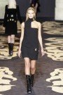 The pleated skirts and jackets, cut from hard, thick leather, worked the pretty side of tough chic while  a long white coat sported patchworked fur sleeves. And if Versace showed fewer eveningwear contenders than usual, no matter. The sexy goddess gowns she did send out, with bondage-y busts and gentle feathered trains, were striking.