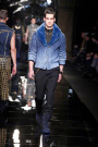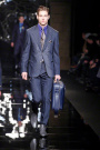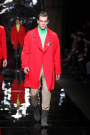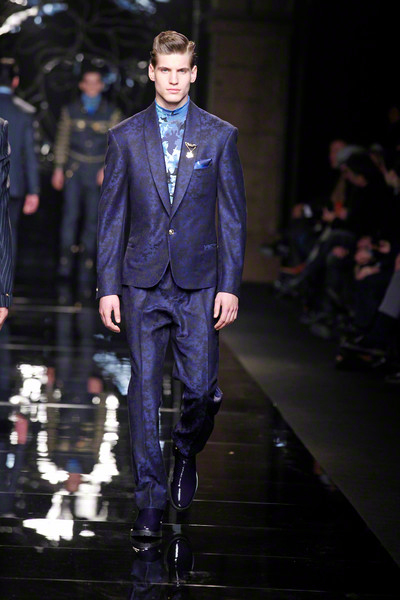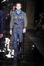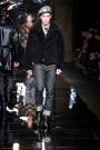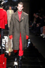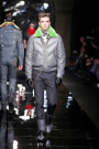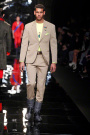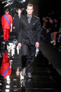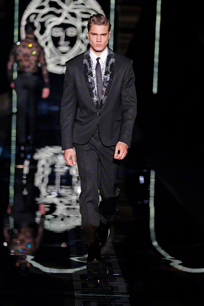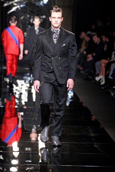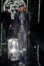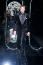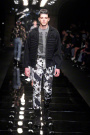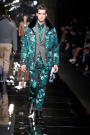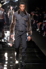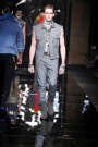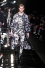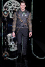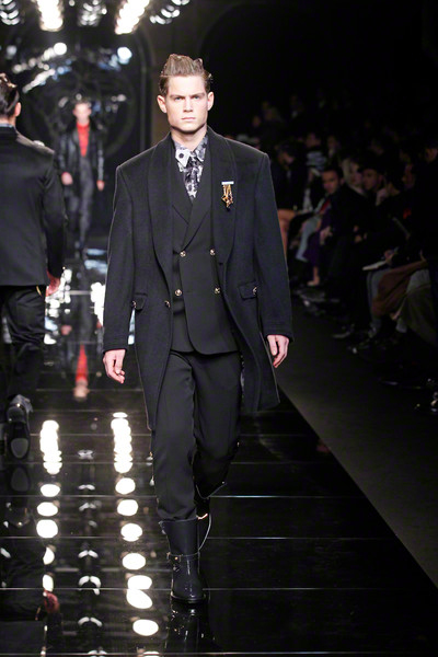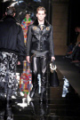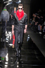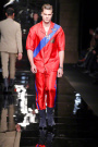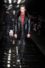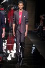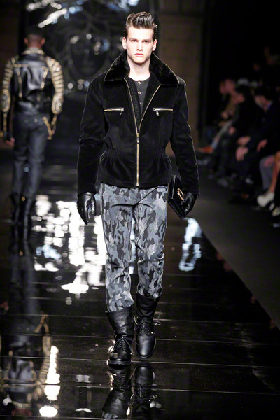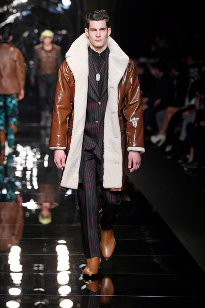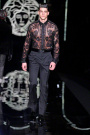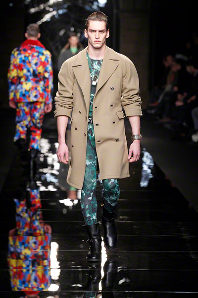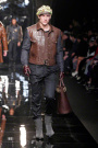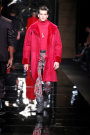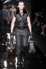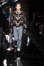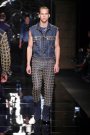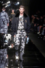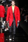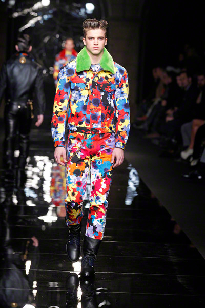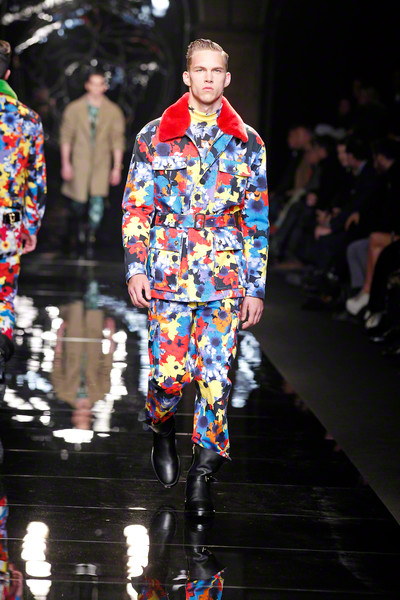 The Versace-collection was so over the top, that designer Donatella Versace must have been joking. It looked like an upgraded version of the Village People had landed at the platform: biker jackets with golden studs and chains, psychedelic (camouflage) prints, eveningwear embroidered with crystals and bright red fur coat. Donatella described the collection as ‘military ironic and Versace glamour’.