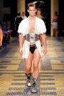 Well, that was quite a flashback at Versace yesterday! The collection and models Donatella sent out reminded us of those good old Versace days with beautiful stallions, gladiator-boxer types with blonde Adonis hair and muscles. The show kicked off with a parade of shorts and briefs from the house’s new swimwear and underwear collection. O la la!