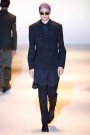 The designer layered long and fluttery printed shirts under plum, sand and olive suits — and even sent some out solo and belted like whisper thin robes. Pinstripes were made to look faded — as if bleached by the sun — as were muted tie-dye prints on suits and scarves, while tuxedo trousers with a drop crotch had a breezy Eastern feel.