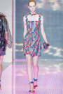 Christopher Kane himself described today’s Versus collection as Cartoon-y and toy-like. And well.. that pretty much covers every look. For fifteen minutes Donatella and Christopher welcomed us into their plastic Barbie-like world. Colors (pink, yellow, blue) were bright, materials (a lot of plastic) shiny and prints (several polka dot variations) clownesque & playful. The designers even came up with accessories, shoes and a few designs made out of plastic chains. There were fully printed looks, flirty asymmetrical dresses, patent leather coats, sheer pink pants and sporty mesh tops. Mix that all together and you’ve got yourself a fun selection of sixties inspired looks. Add a performance of Beth Ditto (singing from above the photographers’ pit) and it’s the ultimate Saturday afternoon entertainment. Optimism is the feeling Versus wants to spread for SS2013 so let’s keep that spirit!