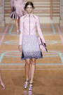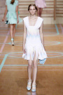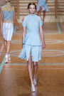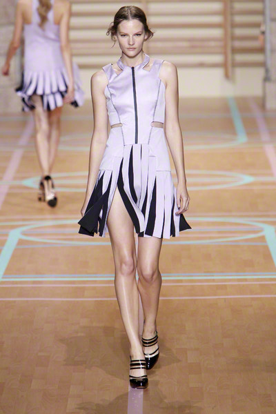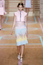 Cheerleaders and basketballplayers played a major role in the Versus ss2012 collection, designed by Donatella Versace and Christopher Kane. The lines at the floor were painted in soft colors – lilac, mint, pink, yellow – that were echoed in the clothes.