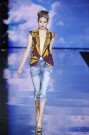 Her designs for next summer were inspired by African tribal looks. ‘I’ve always wanted to do the tribal thing but it’s pretty hard to get right. I think we’ve got it’, Gwen said. She sent out colorful, printed clothes on the runway, that indeed felt like Africa, especially with the changing backdrop of colorful skies.
