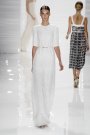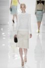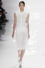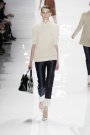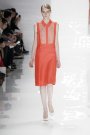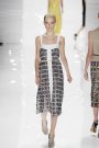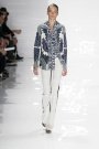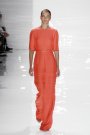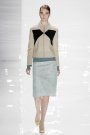 Derek Lam’s spring 2012 fashion show looked modern, streamlined and fresh. With a focus at print and cut. You could trace his Californian backround to the clean, architectural lines of the skirts, the sunny desert colors and a modern riff on the retro men’s wear look of a color-blocked shirt and cuffed straight-leg jeans. But the show was more about snappy sportswear with crisp, minimalist polish and a distinctly American look. Tunics and sweaters were belted over A-line skirts; there were utility and tank dresses.