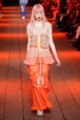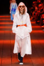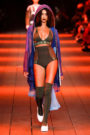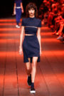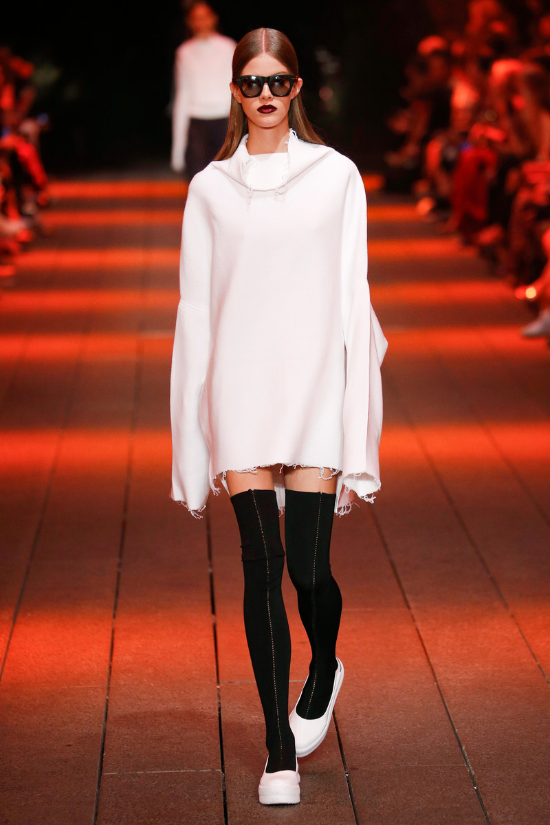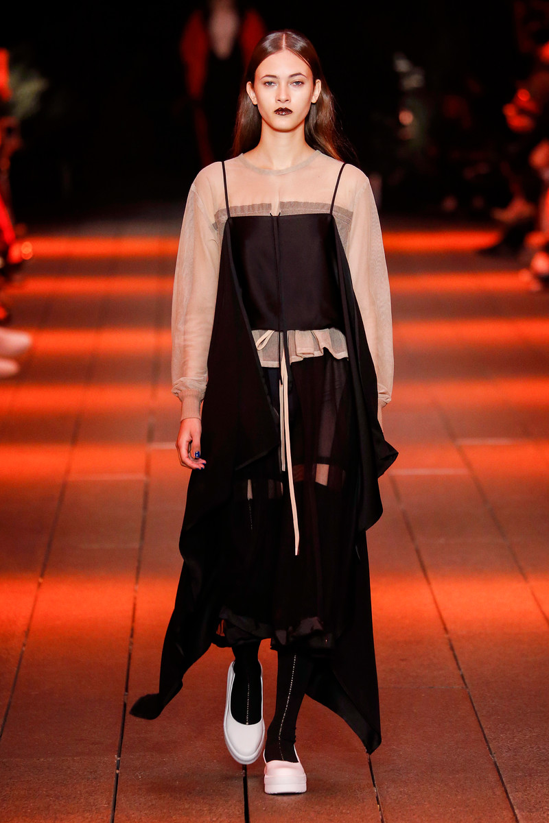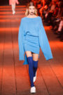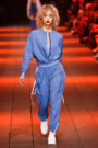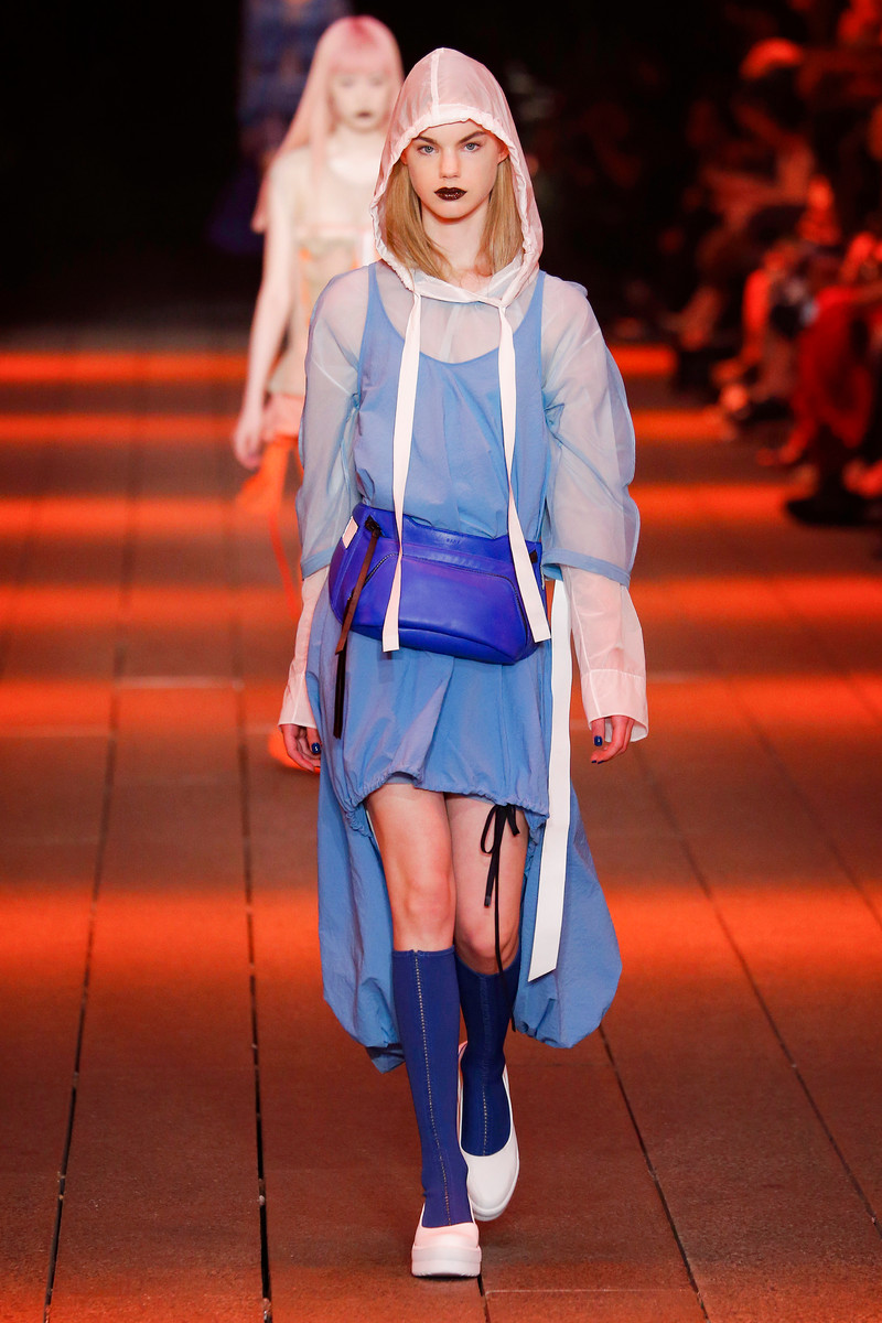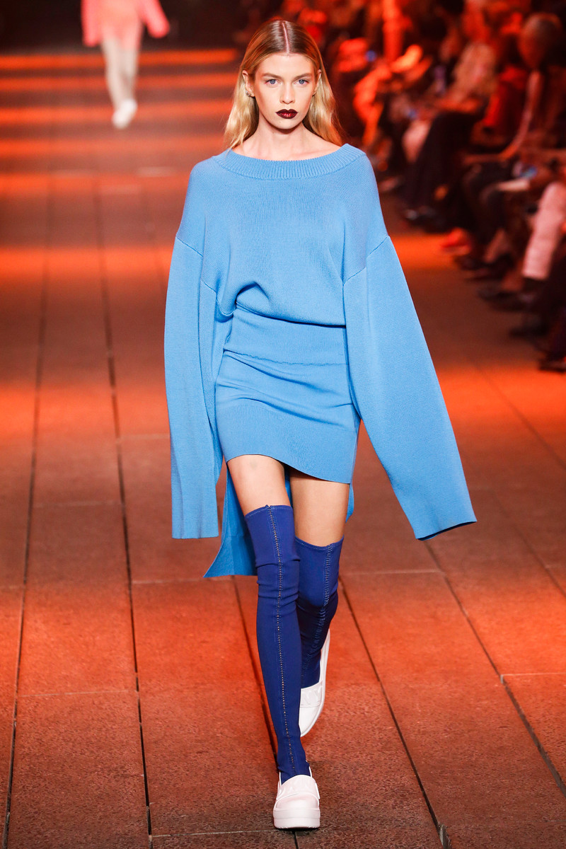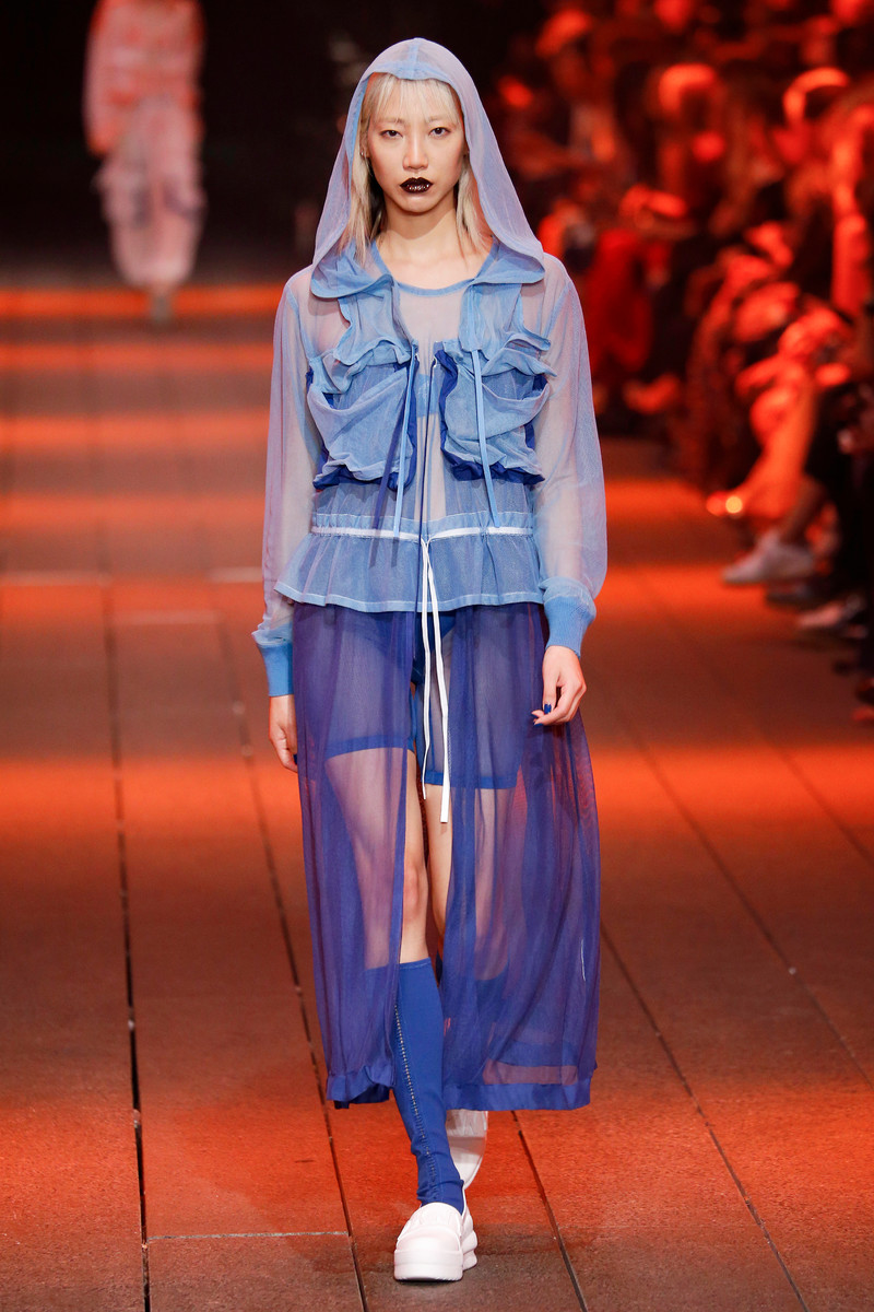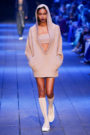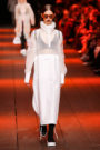The hoodie is having a big moment in fashion this season. And if it’s up to DKNY designer Osborne and Chow that trend is to stay around a little longer. For spring/summer the designer duo introduced a sportive ready to wear range full of activewear. Their model pack, lead by Bella Hadid, looked extremely tough in next season’s boiler suits, slouchy hoodies, DKNY branded sport bras and sheer jackets. Done in a palette of khaki, taupe and navy the items looked suitable for hitting the concrete jungle, NYC, where the all American brand, that was sold to a new company in order to start making profit again, has it roots. We’re not sure if the original DKNY costumer is up for this kind of streetwise fashion. Yet this youthful range will definitely appeal to a fresh young customer. And that might just be the key to the brand’s revival. At least Donna Karan, who sat front row at the show (with a broken foot) was all smiles.