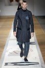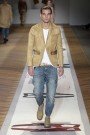 Halfway the show some sand-colored items were introduced; cargo pants, jackets and a long, sleeves, flared coat. They looked stunning with the light blue colored denim items and were roughened up by lots of belts.