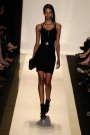 The collection Max Azria designed for Herve Leger was inspired by the quilts of Gee’s Bend, a rural community in Alabama whose women have developed a distinct style of traditional patchworking over the past two centuries. The influence gave the collection an extra dimension seen in geometric patterns and passementerie appliqué details. Versions came flared at the hemline or jazzed up with interlocking chains, a fishnetlike overlay and leather harnesses.
