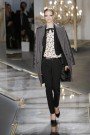 Wu’s polished and ladylike look had a more urban vibe. The designer put a big emphasis on tailoring. He opened with a charcoal gray coat flung over the shoulders of a cropped jacket, printed blouse, and slim black slacks. Instead of an average flannel coat this one came with a strip of black lace down each sleeve.It was followed by prim, high-collared silk blouses with frilled collars and delicate bows at the closure and a virginal white dress with dainty lace overlay. For cocktail and evening Jason Wu came up with his signature tulipdresses and ravishing columndresses.