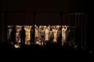 No final changes or last minutes alterations were possible at Marc Jacobs’ fashion show. All of his models were already visible on stage at the beginning of the show. At first they were standing in a wooden frame, wrapped up in brown paper. Yet as Marc Jacobs tore off the paper they just stood there waiting to hit the runway.