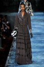 When many of these motifs first appeared in the Jacobs lexicon they were simpler: a dress with faux-pleats made of fabrics was just that. Here, everything was jeweled, embroidered, grommeted, sequined. Brocades topped crinolines and lined furs. A tweedy twinset was in fact sequins; an argyle, faux-python embroidery. Shearling was shorn into checks, mink sewn into chevron stripes and worn on the reverse side. Mannish coats flaunted sparkling jet cascades.