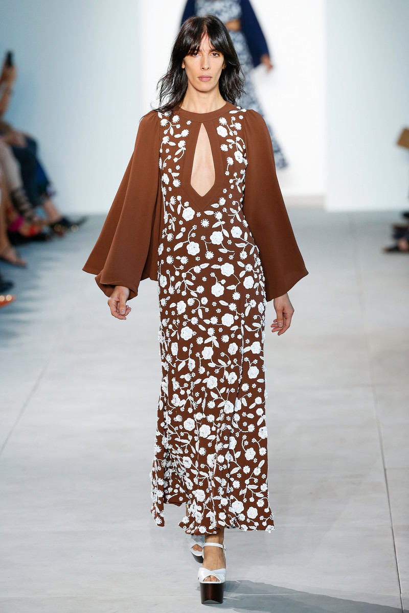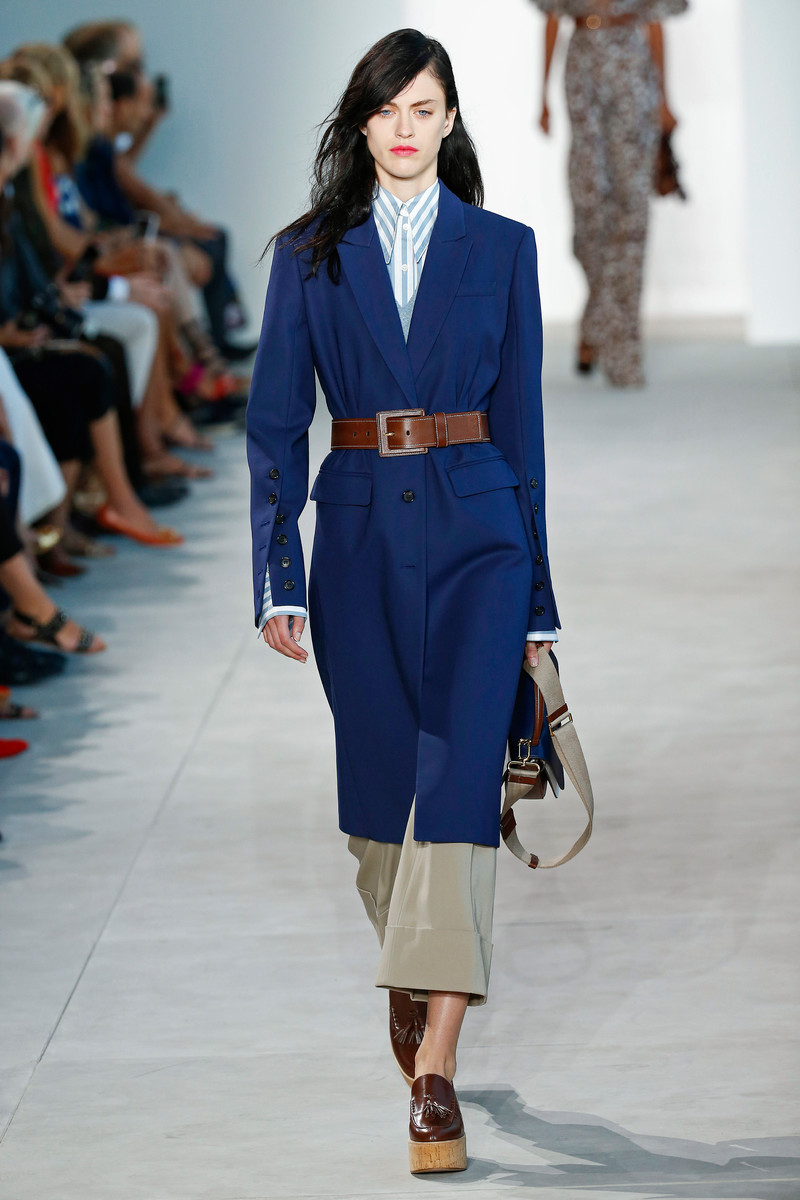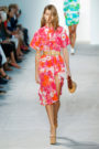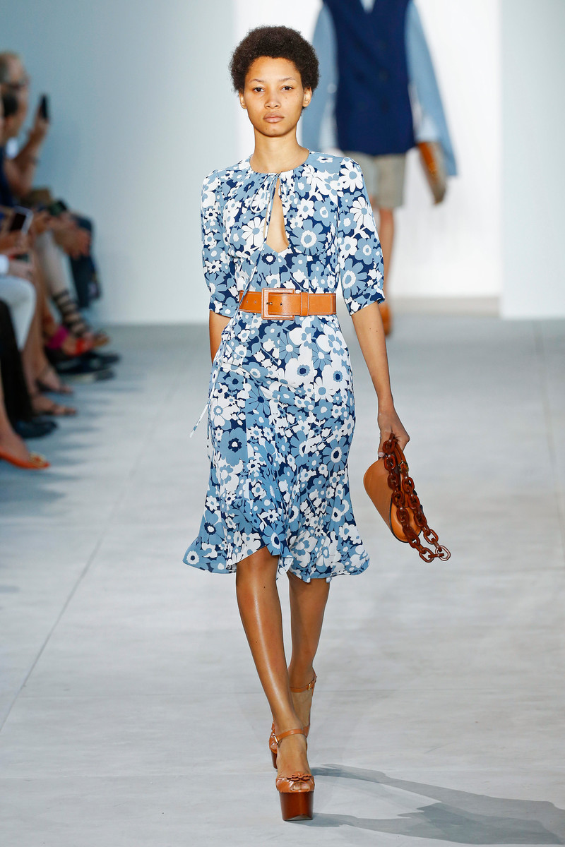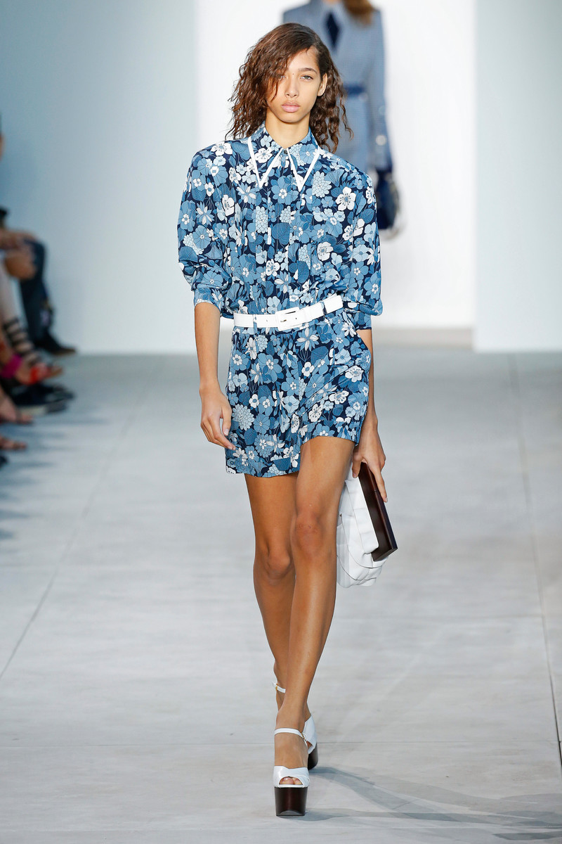 Although the whole world seems to talk about just one thing (Bella taking a tumble) Michael Kors actually had an extremely wearable collection to present this week. A perfectly balanced s/s collection with all the right ingredients. Formal shirts, belted cocktail dresses, a floral printed bikini, perfect tailored classical trenchcoats, LOVE sweaters (that immediately went on sale), a crispy white tuxedo, pleated midi skirts and a number of floral printed evening dresses with a powerful attitude followed each other up on the runway. In a palette ranging from bright pink and vivid Kermit green to navy and sand hues. Holiday vibes to bring back to the city. Nothing jaw dropping or eyebrow raising, just a beautifully tailored upbeat selection of easy to wear designs. An uplifting fashion message in a time where the world is upside down and undoubtedly a success collection for a designer like Kors, who seems to be appealing to a bigger (mass) crowd every season. Consumers who are not just looking for an affordable designer bag or smart watch, but want the complete package. And if it’s up to mister Kors they can dress up in his brand, from head to toe, all days of the season.