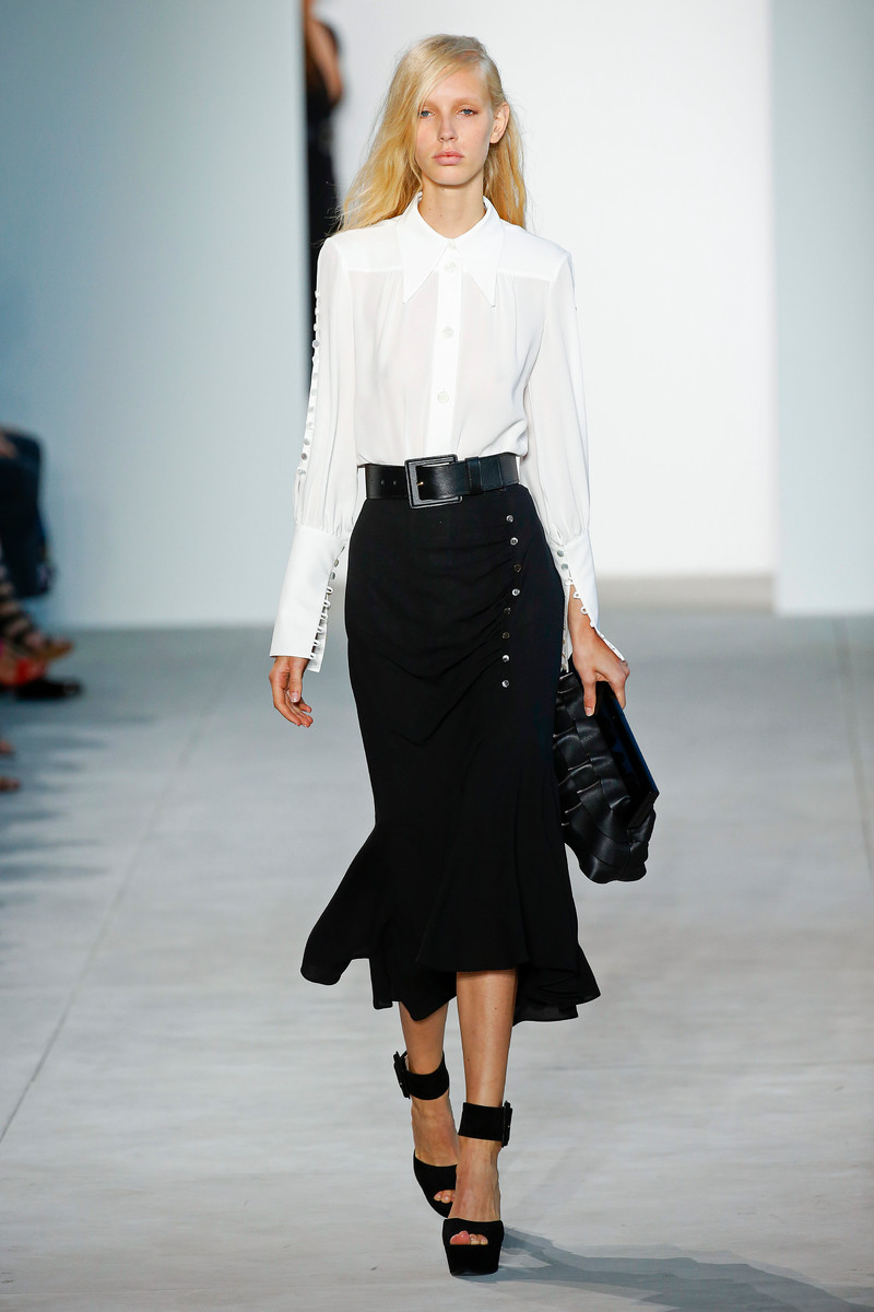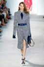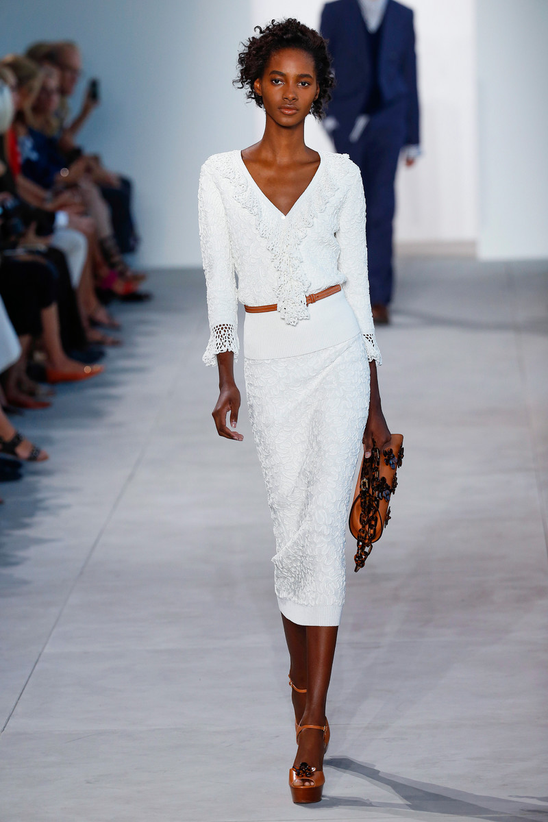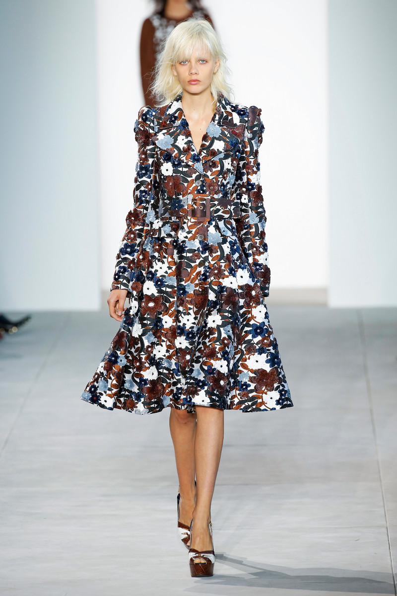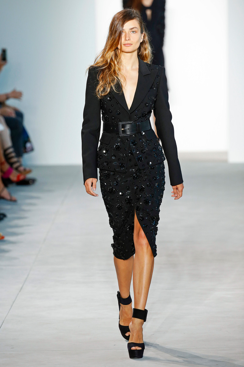 Although the whole world seems to talk about just one thing (Bella taking a tumble) Michael Kors actually had an extremely wearable collection to present this week. A perfectly balanced s/s collection with all the right ingredients. Formal shirts, belted cocktail dresses, a floral printed bikini, perfect tailored classical trenchcoats, LOVE sweaters (that immediately went on sale), a crispy white tuxedo, pleated midi skirts and a number of floral printed evening dresses with a powerful attitude followed each other up on the runway. In a palette ranging from bright pink and vivid Kermit green to navy and sand hues. Holiday vibes to bring back to the city. Nothing jaw dropping or eyebrow raising, just a beautifully tailored upbeat selection of easy to wear designs. An uplifting fashion message in a time where the world is upside down and undoubtedly a success collection for a designer like Kors, who seems to be appealing to a bigger (mass) crowd every season. Consumers who are not just looking for an affordable designer bag or smart watch, but want the complete package. And if it’s up to mister Kors they can dress up in his brand, from head to toe, all days of the season.