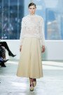 For next summer Oscar de la Renta again succeeded in creating beautiful designs in which every woman can look like the best version of herself. Pencil skirts, lace dresses, A-line skirts; his collection once again was a celebration of femininity. And the designer might have turned 82 this summer, he proved he can still produce pieces that, although intended mostly classic, feel young and fresh. He showed checks, polka dots, hounds tooth and floral prints on classical skirts suits and dresses. As he introduced a wide series of flared dresses things got a little more playful and colorful. Chunky necklaces and large colored earrings added to that effect. A selection of beige shaded skirts and tops felt young and perfect for a young A-lister’s red carpet appearance during upcoming award season. But there’s no doubt the more dramatic, Elizabethan gowns (with ruffs, embroideries and lace incl. a few veiled numbers) that closed the show, will find their way into some celebrity’s hands either.