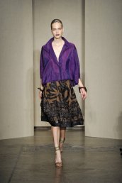 Urban tribes stride the catwalk. Each designer driven by personal inspirations and motivations. ‘Afriluxe’ states Michael Kors, a more minimal tribal turn for BCBG, Haiti influenced Donna Karan where Proenza Schouler designers followed their feel for crafts. Roomy tunics, slouchy shifts and rompy sweaters shape this decorative and laid back look. Brush stroke prints, dip-dyed patterns in a Haitian inspired colour palette; earthy shades and shots with burning orange, deep purple, golden ochre and sea green. Superior craftsmanship is shown in beaded patterns, raffia weaves and tie-dye, batik and ikat patterns. From precise and traditional folk interpretations to expressive, graphic and large-scale tribal twists.