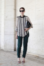 The bold horizontal stripes on several polo shirts felt a little boring. Yet those were easily forgotten after the jersey/beige sweater + blue belt came by. An aqua-colored blouse with graphic prints had the same wow-effect.