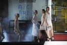 His models looked confident, sexy and tough, just like he intended to. Yet it felt like there was a little too much going on at once. He might have pushed the boundaries a little too far with the dark edges, the sheer fabric ánd the cutouts.