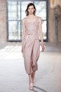 Two silhouettes anchored the lineup. Tailored looks featured long jackets, their shapeliness achieved via twisting of the fabrics and asymmetric closures, worn over low-slung, wide pants in fluid fabrics. Dresses kept close to the body on top, releasing into languid skirts. Either way, lacing figured prominently, for both decoration and function.