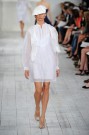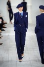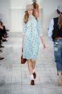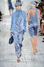 The Great Recession we’re all living through got Ralph Lauren thinking about the American power to deal with problems. He was inspired by the character of the worker, the farmer, the cowboy, the pioneer women of the prairies. Models in newsboy caps wore faded and torn oversized jeans with blue work shirts, patchwork overalls, and nightshirts in stripes, or sweet flowerprint dresses with white ankle socks and heels. It was cinematic, like most of Lauren’s collections. And it goes without saying that his vision is a romanticized one.