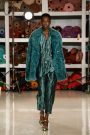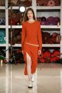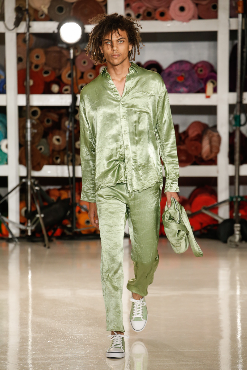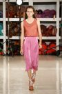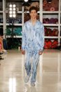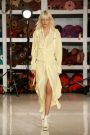 Lies Marjan designer Sander Lak wanted his spring collection to be personal. In his show-notes, he noted that the pieces were “put through a wash cycle, fabrics were squeezed, wrung, tumbled and hung up to dry.” That did not mean they looked lived-in or aged; on the contrary, the collection seemed fresh and spirited, perhaps because of his gently twisted slash-folded knits and his signature use of color. Guava and yellow, mint green and lavender, metallic orange and pink were all done in his signature slouchy drapy vibe.