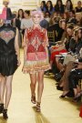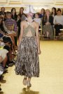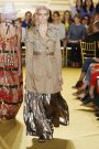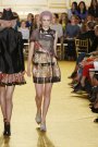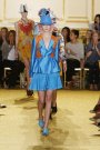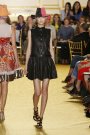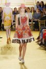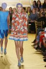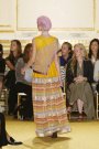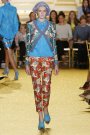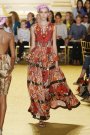 Thakoon Panichgul went multiculti again for spring. This time around, it was an ordinairy  bandanna that stimulated his fantasy.  When he studied its pattern, the paisleys led him to India. The cross-cultural exchange produced a super-vibrant collection of searing turquoise, saffron, orange, and gold, in silhouettes that ranged from Western shirts to shirts and dresses embroidered at the neckline. The metallic trim on saris provided a recurring motif.