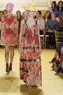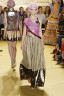 Golden bands encircled the hem of a mini, the legs of khakis and lightweight denim jeans, and intervals on a long trapeze dress. Topping everything off were two-tone cowboy hats and blue sprayed hairdo’s.