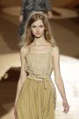 One of the highlights certainly was Marc Jacobs’ fashion show. Not only did the designer create a buzz around his show by starting a contest on Twitter only three weeks before the show. The beginning of the show was also very spectacular, with the 56 models all standing in a box on the stag wrapped in brown paper. The show started on time, ’cause there were no celebrities invited and we loved the fact that Somewhere over the rainbow was played. The song brought back good memories while Marc Jacobs brought back old trends. He showed many items of his nearly two-decade repertoire. He stressed the fact that he didn’t want his clothes to look new. They were fashionable but were ‘not trying too hard to be so’. The clothes looked conservative, pure and simple and had a vintage vibe going on. The waists were raised and the A-line was back. And we just let us carry away by the music, the romantic clothes and the serene atmosphere. We loved it!