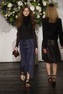 Their fall collection looks very low key and to the point, with black, white and navy as the main colors and a matte denim-blue python as their most luxurious material. There were collarless and belted wrap-coats, long sleeve leather T-shirts, silk jumpsuits, long hemlines and a slouchy tuxedo-jacket. All shown with flat Grecian sandals and models with hardly any make-up.