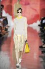 It was Tory Burch’s first catwalkshow in more than seven years and she just opened a new flagship store in New York. Sales are doing well, so there were some reasons to be cheerful. For spring, Burch chose the twenties-era Deauville as her inspiration. The result was a good collection, refined, smart and neat and Burch didn’t fell in the trap of just copying that style. She used her own print, silhouette and colors. Her take on the iconic sailor stripe for example was changed into waves. And the dots were actually tiny little squares.