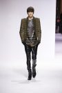 Sticking to his skinny, square-shoulder silhouette, military — one of the season’s key trends — was a major theme, but more for the embellishments than a utilitarian mood, with plays on pockets, zips and lacing on a run of khaki green bombers and bikers.