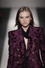 Apart from the glitters, the gold and the black Decarnin’s designs were colored purple. The color popped up two or three times: on a fur coat, a dress and a tight velvet jacket.