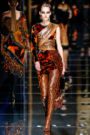The wealth of craftsmanship and materials on display was impressive. Rousteing is proud of the house’s historic ateliers, which turned out dresses and tunics in elaborate patchworks of crystal mesh, jacquard, leather appliqué, embroidery, velvet, fringe and metallic studs. This was craft of the highest level.