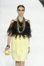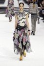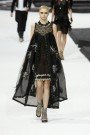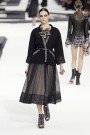 Still almost every outfit looked unfinished. The cropped jackets, narrow skirts and sheer dresses had ragged edges and perforations. Karl changed the fake fur of last season into feathers and lace. He also showed some tweed patchwork.