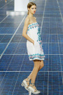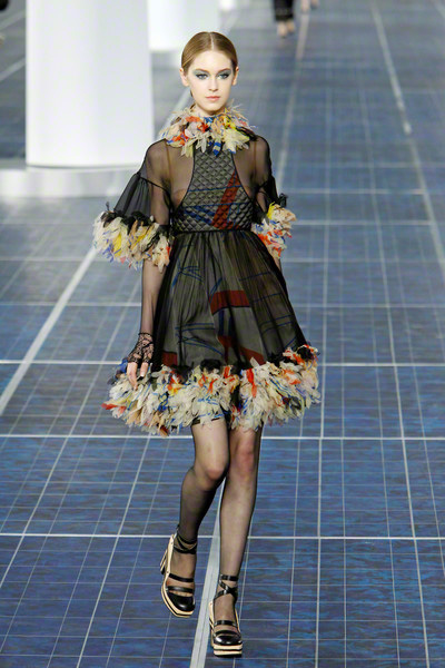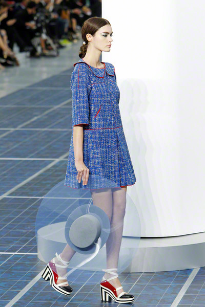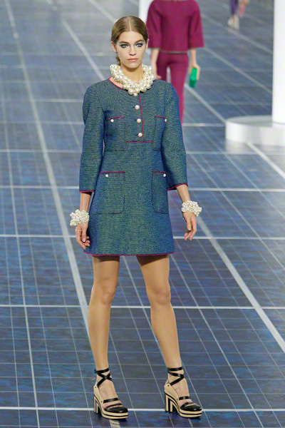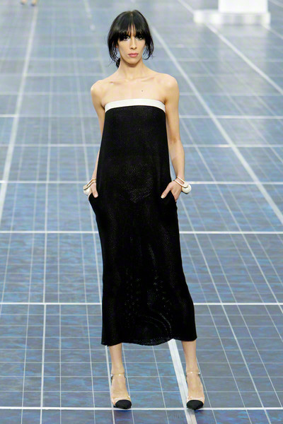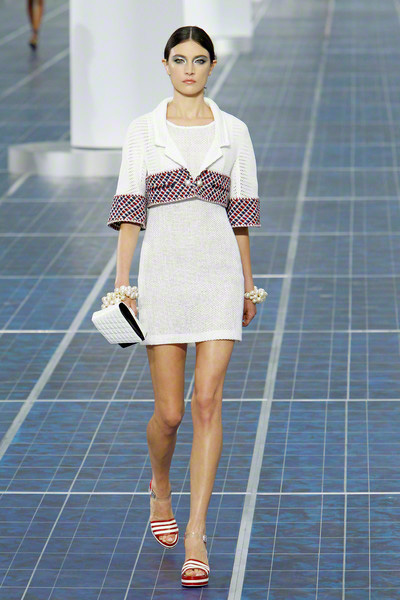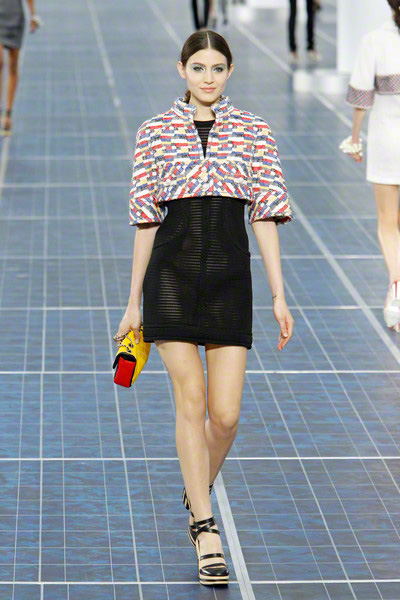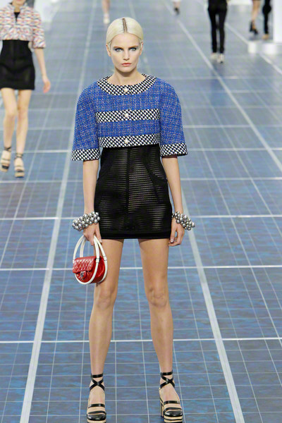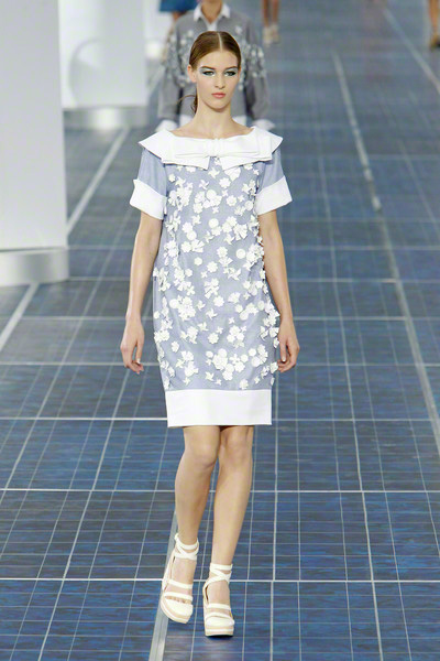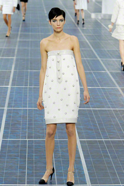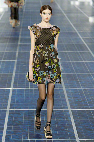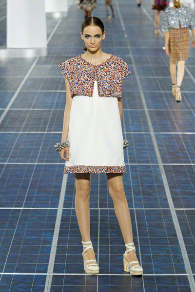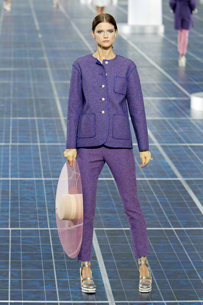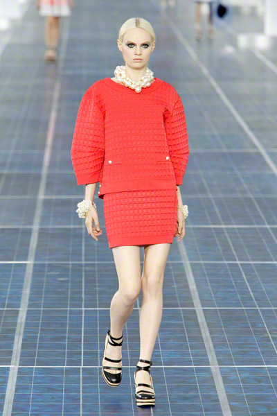 He did a very non sustainable thing a few seasons ago by shipping that ginormous iceberg to Paris, yet Lagerfeld is fully focused on sustainability now. At least, so it seemed at Chanel’s SS2013 show at the Grand Palais. Fake windmills and a catwalk painted with the image of solar panels formed the backdrop for the collection presentation.