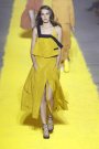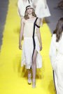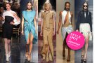 Cutout, slashed and sliced and sometimes pinned, wrapped and knotted back together again. Cut-outs unveil long lean legs as well as deep décolleté and hints of midriff. Jean Paul Gaultier plays with wide gathered volumes and wraps, folds, turns and twists these. Where Lanvin unveils in a more cool and understated manner, carefully exposing hints of skin in a subtle and sophisticated manner, Maison Martin Margiela shows more brutal constructions and deconstructions where Mugler goes futuristic and uses cuts and slashes for streamlined, organic and a more architectonic shaping and sculpting.
