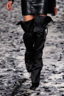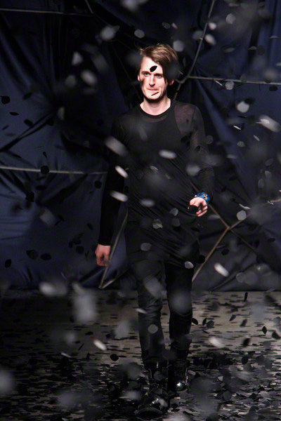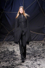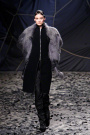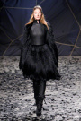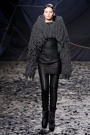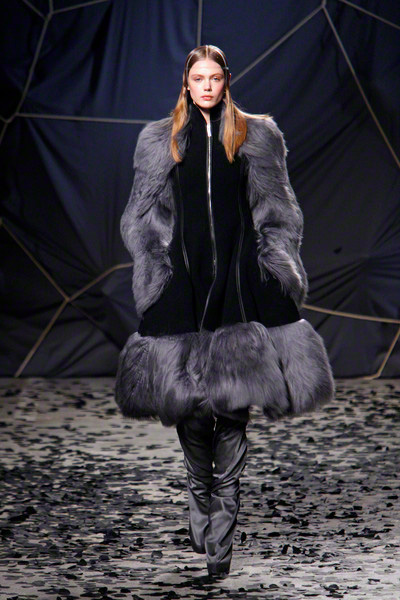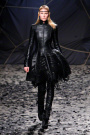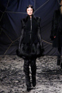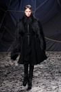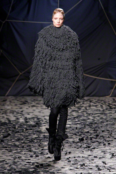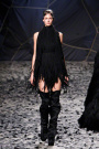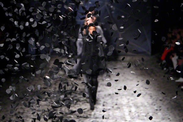 The black confetti surely gave the show of Gareth Pugh a moody edge. Not that he needed this, since his collections always reflect a dark, mysterious mood. Somehow Pugh let go of his fetish looks and toned things down. There was lots of leather, fur and a contrast of volume. Appealing were the fuzzy black fur coat that opened the show plus the sharp-shouldered dresses with a leather bodice and a full fur skirt. Luckily Gareth Pugh didn’t forget to put some drama ans exaggeration in his presentation, that’s what a show also is about.