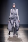 Gareth Pugh is fashion’s new darling. And everybody want to be part of his popularity these days regarding all the vips front row like Rihanna and Michael Stipe. For his ss 2010 collection Pugh moved away from his hard edged super-structured looks, this time he emphasized a more romantic and softer mood. The first outfit—an loose trench over a floating chiffon dress in shades of gray—set the mood, along with wrapped heads, makeup that shaded the models’ faces as though they’d walked through an ash cloud. Of course Pugh experimented with fabrics: feather-light tops, micro-pleats or slashed crepe & chiffon for dresses and pants. This collection seemed a new step for Gareth Pugh, daring but effective.