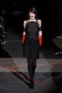 It was just another collection with Tisci’s signature tailoring: sharp coats, tuxedo suits, and lean black pants. Red glitter gloves, bags and lips accompanied the clothes, as did sexy scarlet, black and nude lace. One of the best looks were the black leather pieces — mini slips and skirts — mixed with lace.
