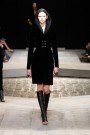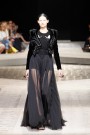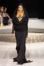 Even when he’s designing haute couture Riccardo Tisci moves between strict-chic and otherworldly, goddesslike creatures living in his fantasyworld. This season it looked like mix of Morocco, Berber tribes-people and other Middle Eastern influences. The silhouette was tailored with padded shoulders and focus at the waist, fabrics moved from velvet to leather and golden embroidery. There were hoods and veils, corsets and drapes – and it all looked very modern.