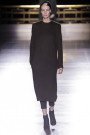 Long lean silhouettes in a palette of grays, taupes, greens and browns awaited us at Ackermann. Designs with which the designer tried to portray gracefulness through their masculinity. And so models sported gray suits with long sleeves and low V-necks. They wore skinny velvet and leather bias cut pants with short structured jackets. Floor sweeping woolen coats and dark, lean turtle neck dresses belted around the waist. If the designs and the models’ expressions didn’t breath enough carelessness, it were the hands in those pockets that added to the feeling the collection, and perhaps Ackermann himself, was at ease. Creations may have started from a menswear point of view; worn by those graceful models, looks were sophisticated and tough (especially those zip-front jackets) even sporty at times, yet never too masculine. A hounds tooth print used on the thickest kind of wool looked perfect for winter and particularly beautiful on a maxi dress paired with a black top. A sober collection with just enough fresh influences to get us excited. Simplicity at it’s finest.