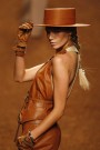 Again lots of (broad brimmed) hats and lots of leather. Yet this time in a softer color palette of camel, sand, beige and cognac, which immediately turned the masculine suits in more feminine clothing.
